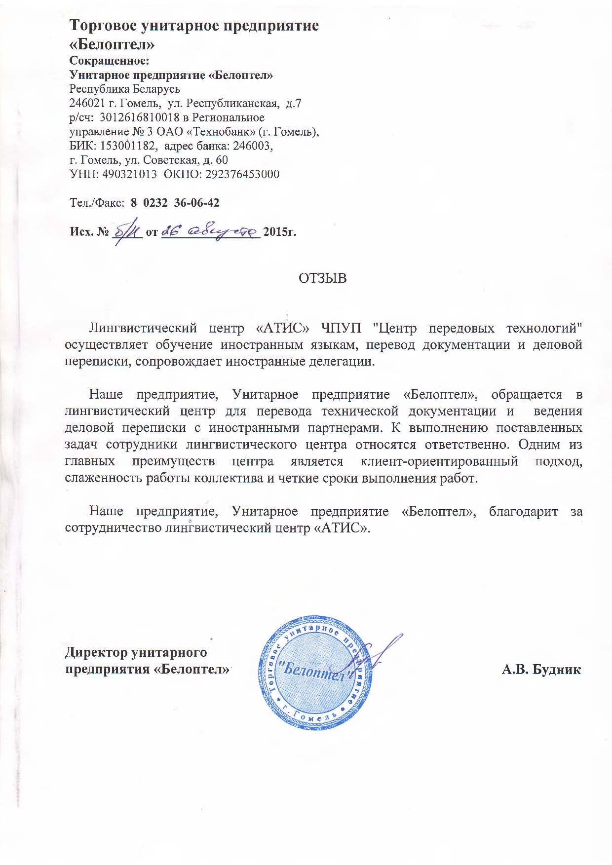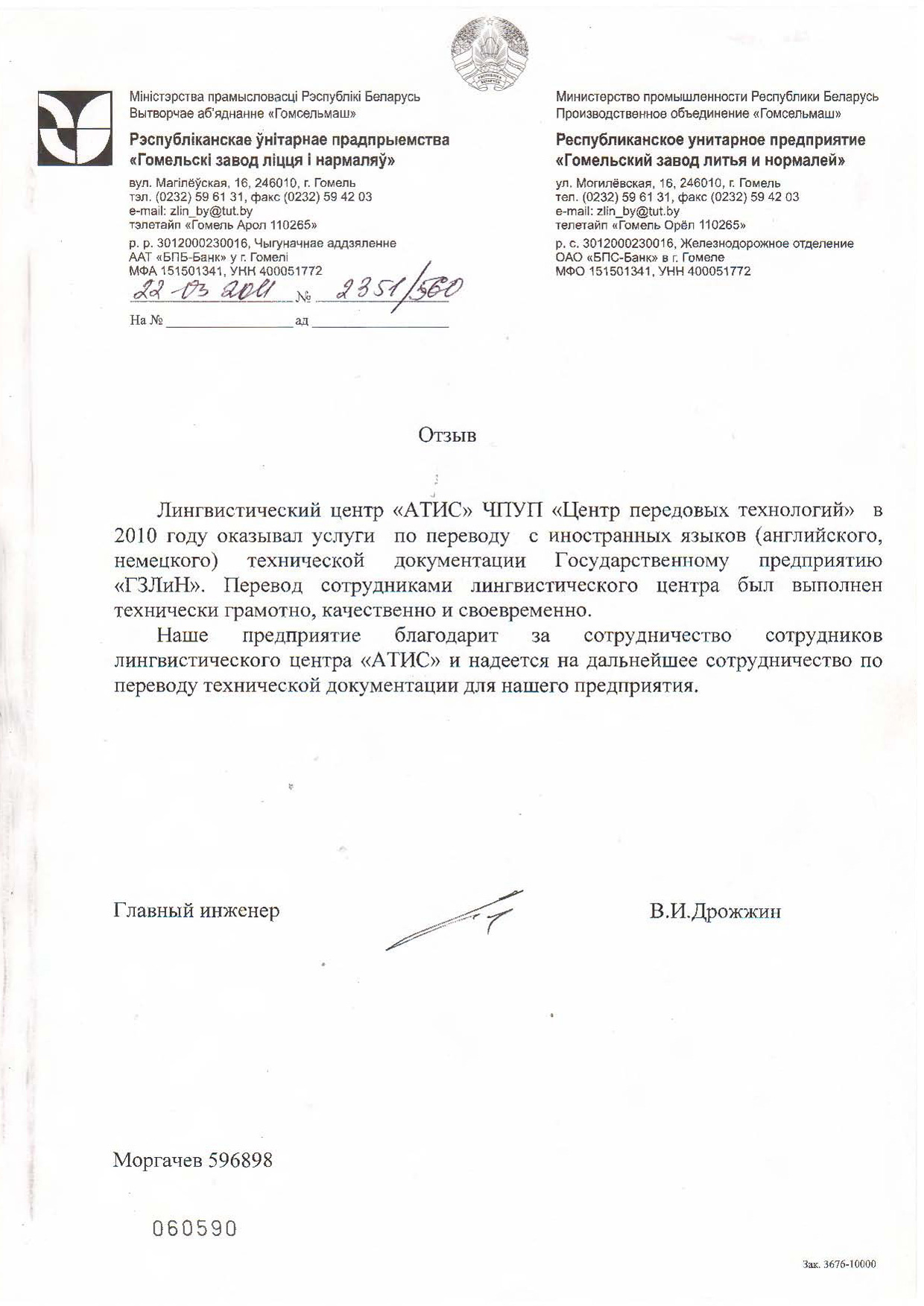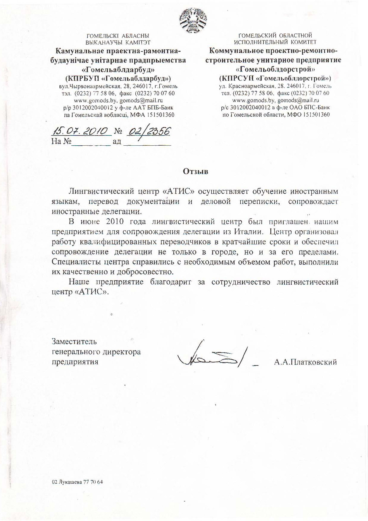 Наши переводчики сопровождают иностранные делегации на предприятиях Гомеля и Гомельской области, осуществляют перевод текстов различных тематик (общая, техническая, юридическая, экономическая, информационная и др.).