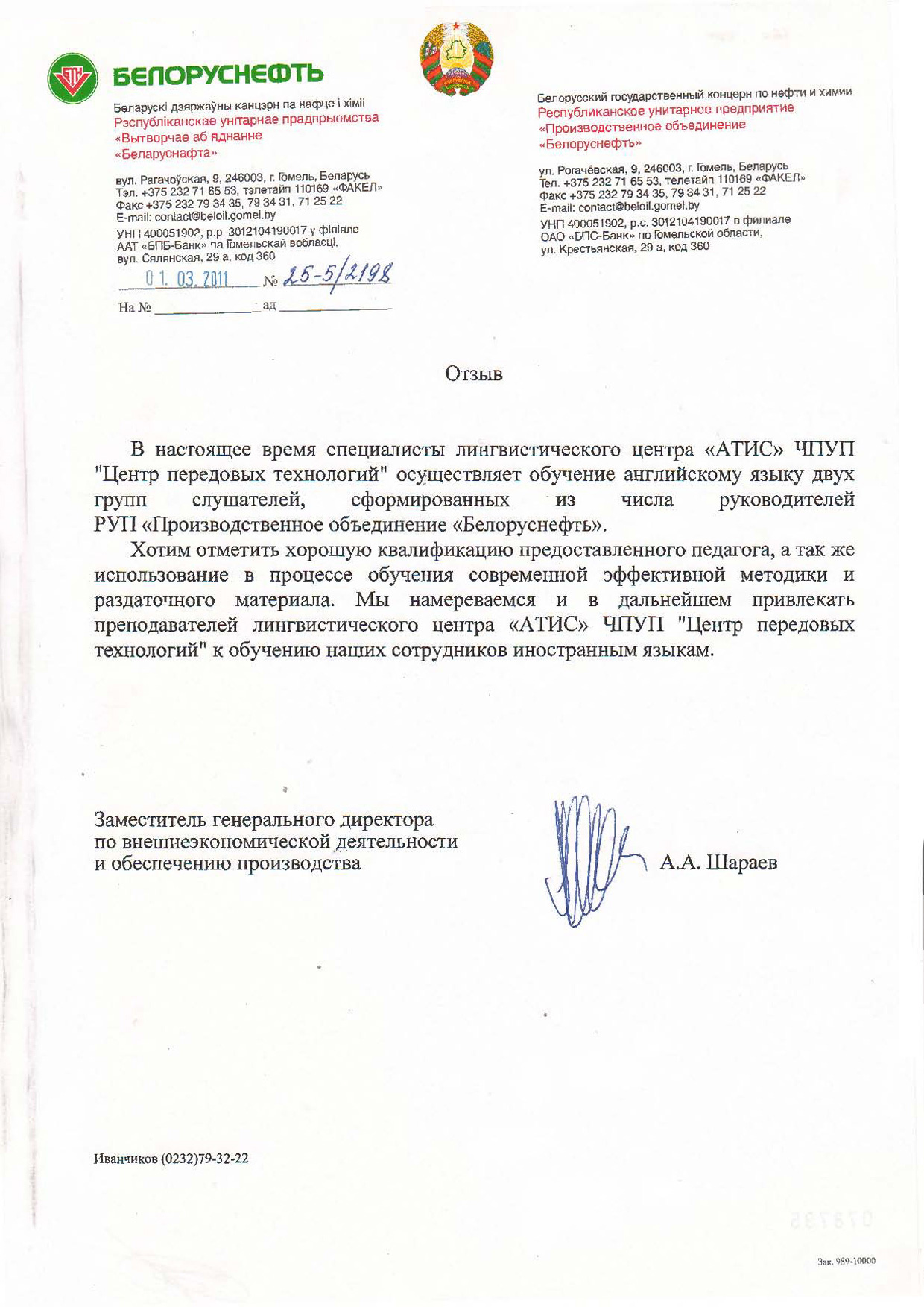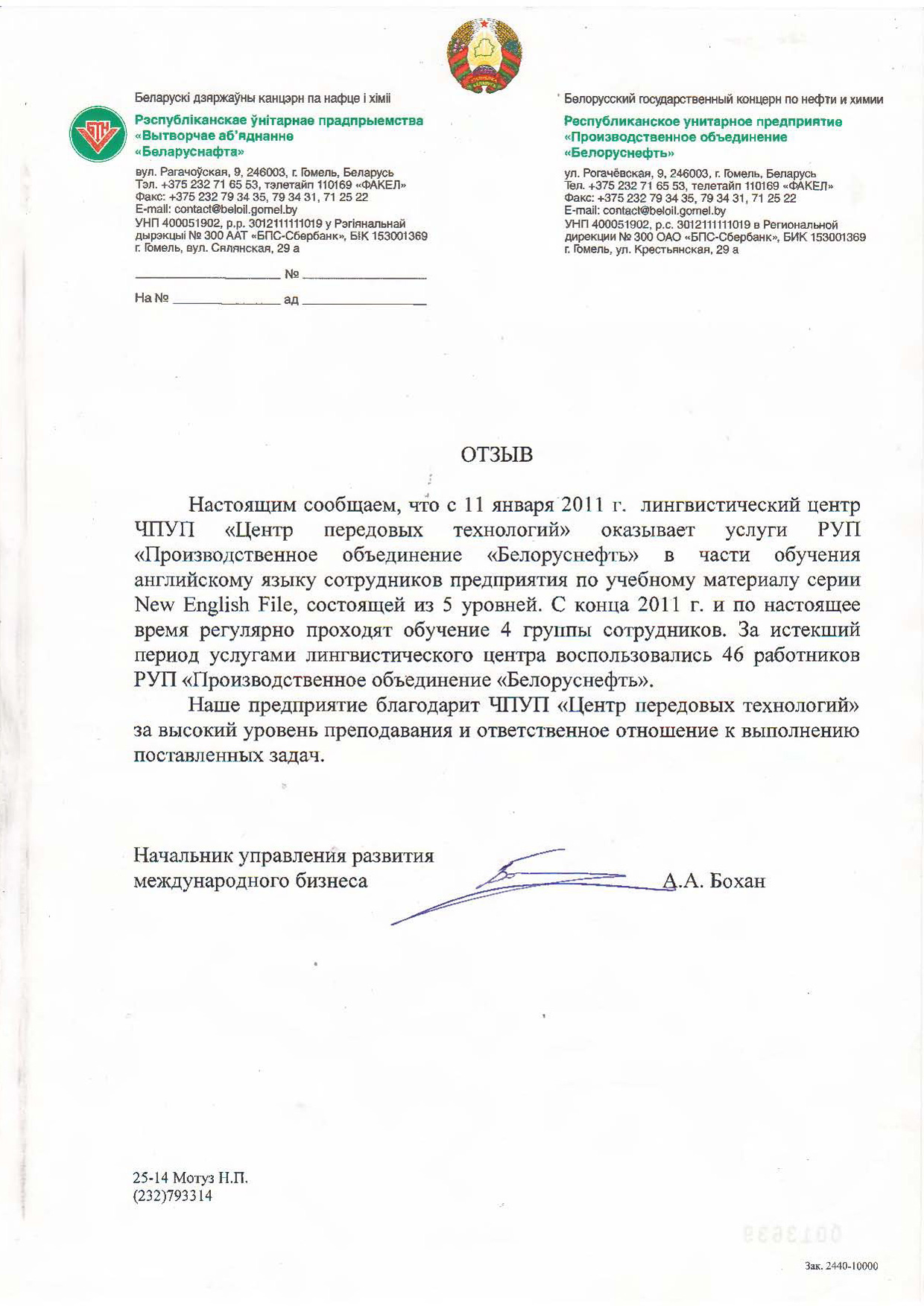 Наш центр имеет успешный опыт в обучении специалистов испанскому языку РУП ПО «Белоруснефть».